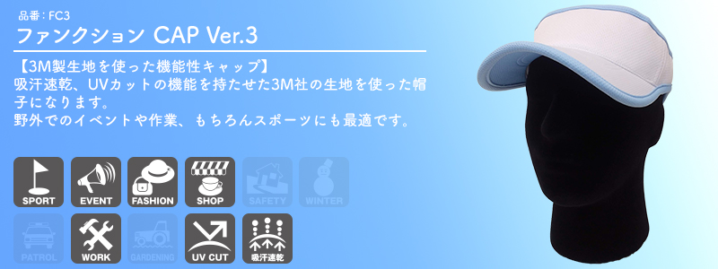 吸汗速乾、UVカットの機能を持たせた3M社の生地を使った帽子になります。