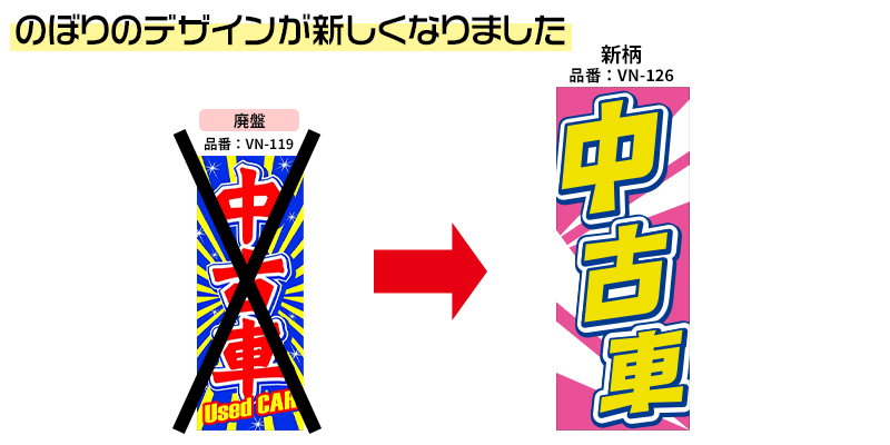 【4枚組合せ】VN-126 大のぼり 中古車 | W700mm×H1800mm 自動車販売店向のぼり 【メール便発送に限り送料無料】